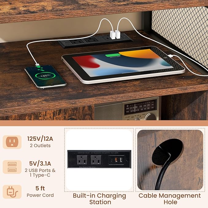- Make Charging Easier: This mobile file cabinet features 2 outlets(125V/12A), 2 USB ports and 1 type-C(5V/3.1A) that keep your devices powered up and within reach. Additionally, the cable management hole makes it easy to keep wires organized and out of sight.