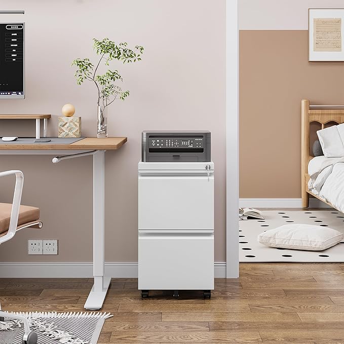 - 【Abundant Storage Space】:This small file cabinet features 2 spacious drawers equipped with full-extension glides, allowing the drawers to fully open. rolling file cabinet can accommodate hanging file folders in Letter, Legal, and A4 sizes.