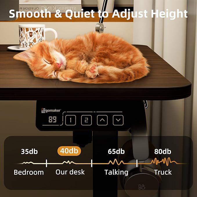- SOLID CONSTRUCTION: The height-adjustable desk is made of heavy-duty steel, with a weight capacity of 154 lbs and travel speed of 1" per second, keeps the desk stable even when it rises to the highest point. The soft start/stop functions make the desk move smoothly and quietly (<50dB)