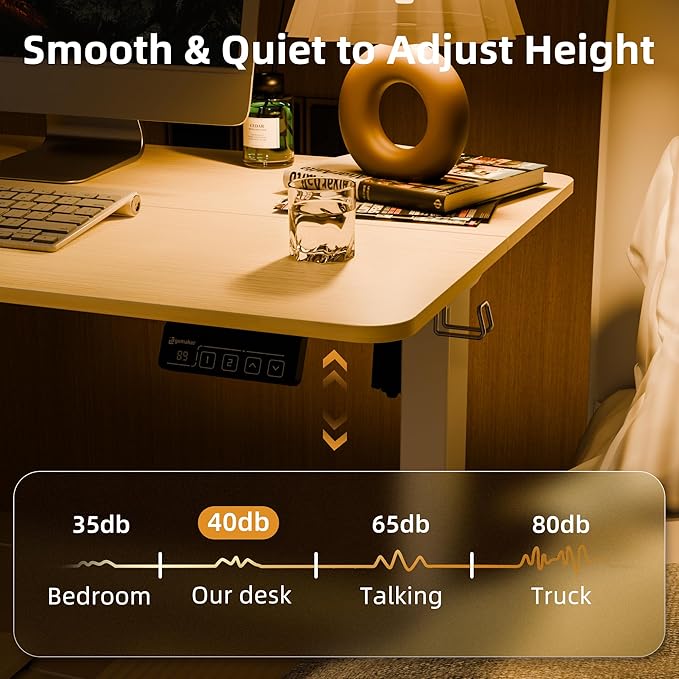 - SOLID CONSTRUCTION: The height-adjustable desk is made of heavy-duty steel, with a weight capacity of 154 lbs and travel speed of 1" per second, keeps the desk stable even when it rises to the highest point. The soft start/stop functions make the desk move smoothly and quietly (<50dB)