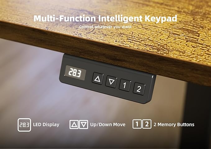 - Height Adjustment: The adjustable desk is equipped with an advanced electric lift system. The height adjustment range is from 28.3 inches to 46.5 inches, and different heights can be preset. The powerful motor ensures a smooth and low noise lifting process, quickly adjusting to your comfortable height.