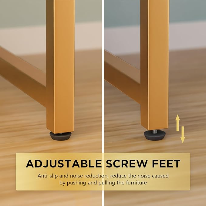 PayLessHere | 47 Inch Computer Desk | White Gold | Office Desk with Metal Frame, Adjustable Feet | Water-Resistant, Scratchproof Surface | Sturdy Writing Table for Home Office or Study | Pack of 1