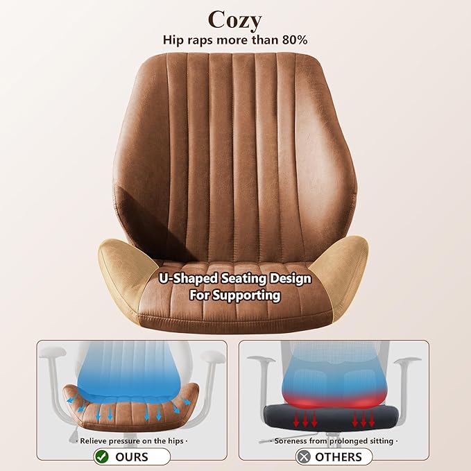 - Faux Lether Suede Fabric: This office chair is got this awesome suede fabric that feels amazing, and it's super durable and warm. Plus, it's easy to clean and resists stains, cracks, and scratches. The super comfy cushion is filled with high-density foam for ultimate support. It's time to level up your home office with this amazing desk chair!