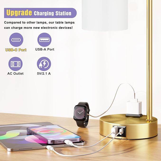 - UPGRADE LAMP WITH USB PORT AND OUTLET - We have integrated an upgraded version of the dual USB C+A charging ports (5V/2.1A) and an AC outlet (120V)on the modern lamps,you can power 3 devices at the same time no matter the bedside lamp is on or off!Multifunctional desk lamps will take the place of power strip and decorate your room!