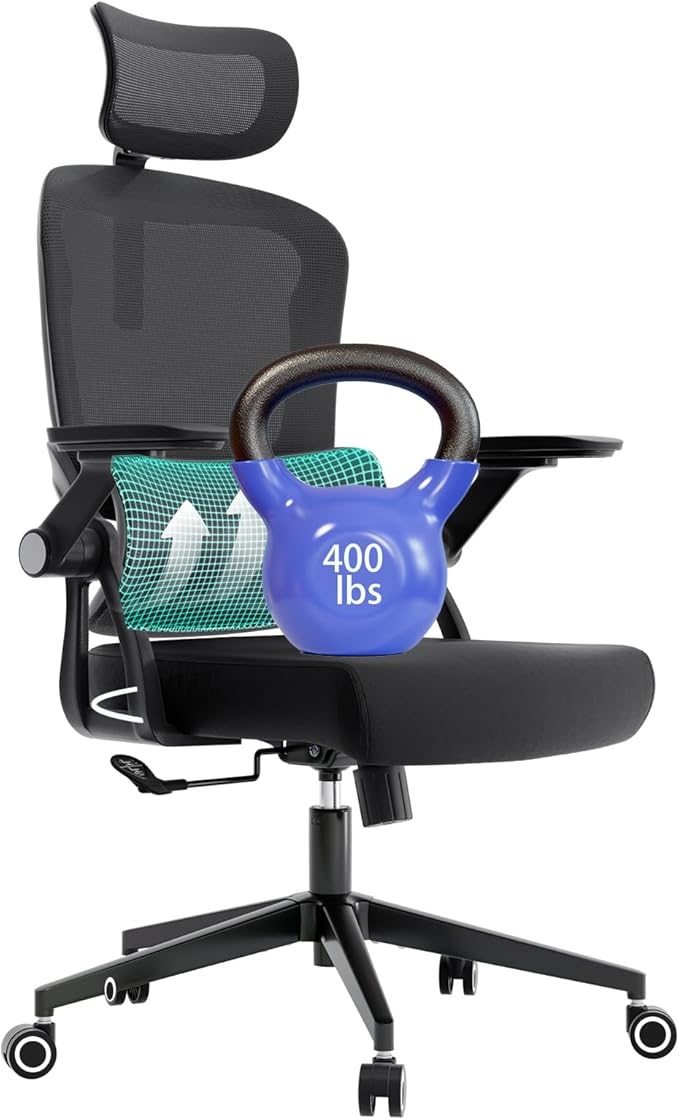 Big and Tall Ergonomic Office Chair - 400LB Comfy Desk Chairs with Headrest and Back Support, Heavy Duty Mesh Computer Chairs with Wheels and Arms for Home Office, Study, Bedroom and Dorm