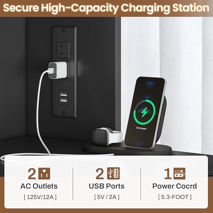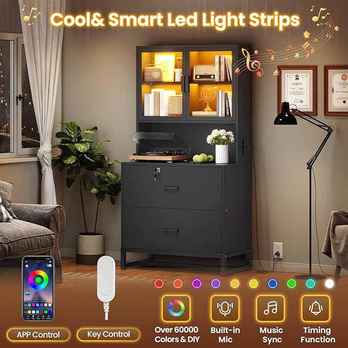 - 【File Cabinet with Charging Station】The home office file cabinet is equipped with 2 sockets and 2 USB ports to power up to 4 devices at the same time. The desktop size is 30.7 inches, which is large enough to use 2 machines at the same time, such as printers, scanners, copiers, laptops or other office electronic devices.