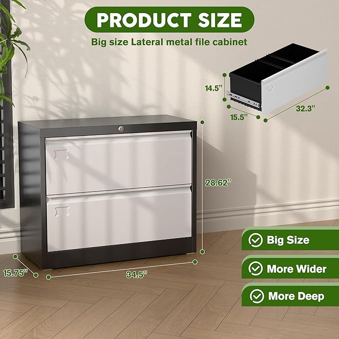- [Larger and Deeper] 2 drawer Lateral file cabinet has deep&spacious drawers . Each drawer of the lateral file cabinet has 2 adjustable bars for hanging Letter/Legal size files,hanging file folders to keep your document organized.