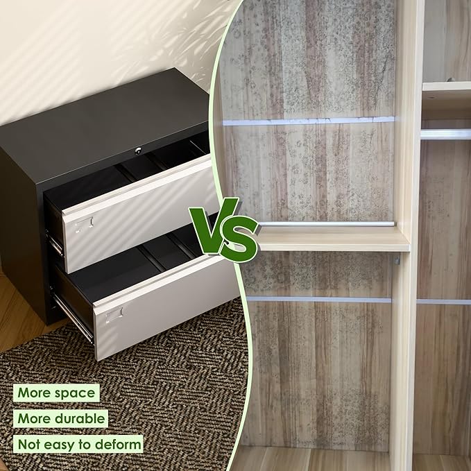 - [All-steel Stable-Rustproof] 2 drawer lateral file cabinet has a reinforced steel frame with a corrosion and stain-resistant powder coat, Rugged and not easily deformed,which is ideal for long-term use.