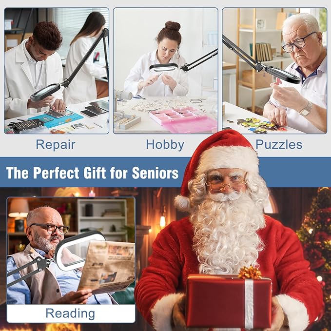 - 5 Color Modes & Stepless Dimmable: Transform your workspace with our magnifier, designed to eliminate harsh glare and provide soothing illumination. Featuring 5 adjustable color modes and stepless dimming, you can easily find the perfect brightness for any task. Whether you need cool white for detailed work or warm light for comfortable reading. This flexibility reduces eye strain and enhances comfort during extended use, making it ideal for professionals, enthusiasts, and seniors alike.