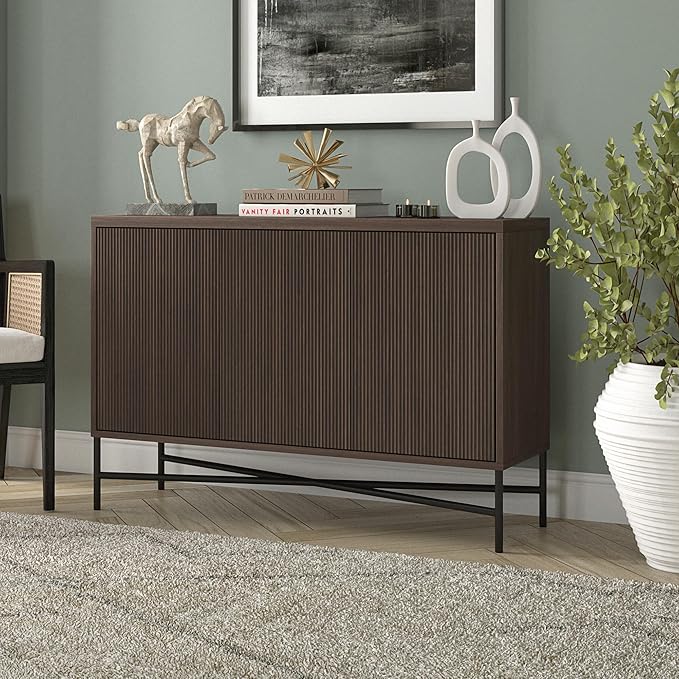 Henn&Hart 48" Wide Rectangular Buffet Table in Warm Brown, for Home, Living Room, Bedroom, Entertainment Room, Office