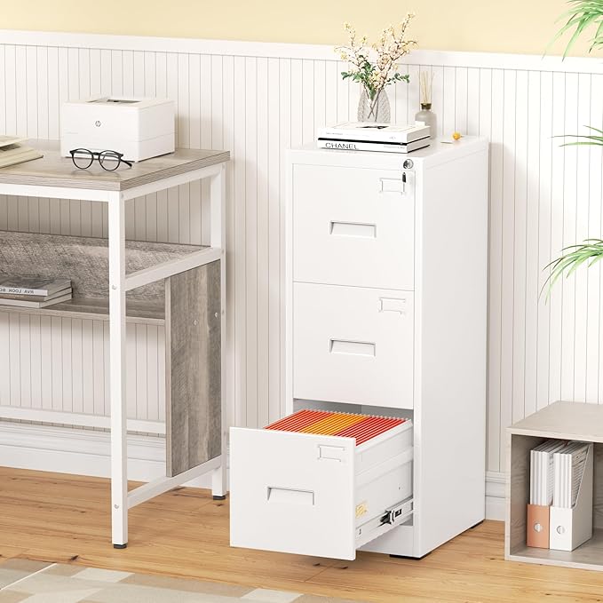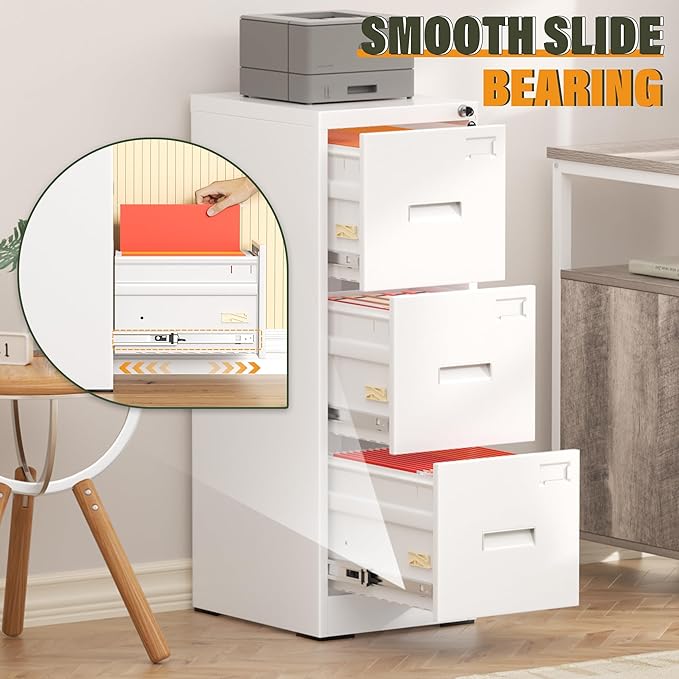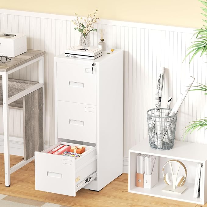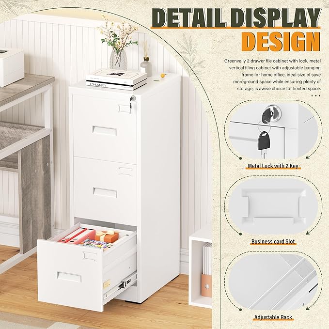 - [Durable]: Greenvelly 3 drawer file cabinet is made of sturdy and durable steel, ensuring that the cabinet is not easily bent. The uniform powder coating technology on the steel surface effectively slows down the rusting of the filing cabinet, providing long-lasting security for your valuable information.
