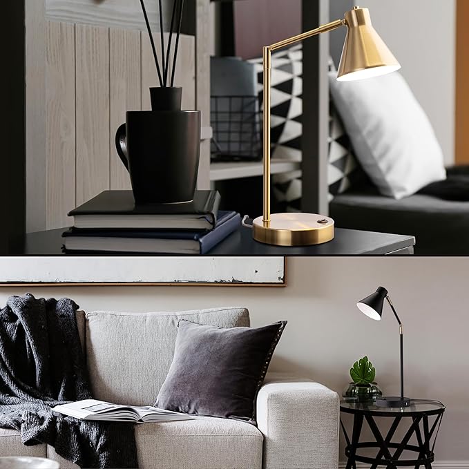 O'Bright Astrum - LED Desk Lamp with Dual USB Charging Ports, 100% Metal, 270 Degree Swivel Arms, Soft White Light (3000K), Bedside & Home Office Table Lamp, ETL Listed, Antique Brass Finish