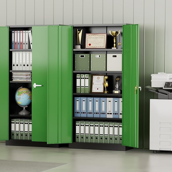 INTERGREAT Metal Storage Cabinet,72" Steel Lockable File Cabinet with Locking Doors and Adjustable Shelves,Locking Tool Cabinets for Office,Home,Garage,Gym,School (Black Green)