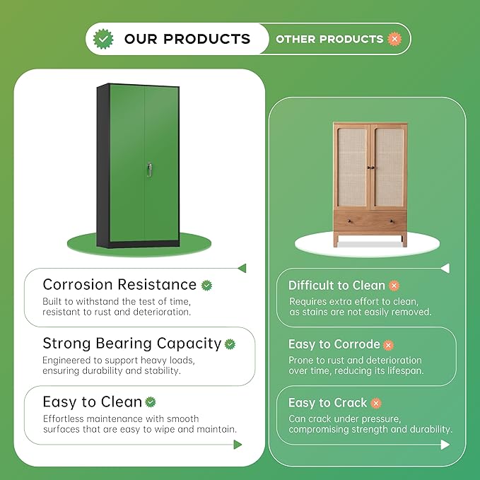 - 【pratical design】Our tall metal cabinet equipped with 4 adjustable shelves to provide adaptability and convenience.Regardless of what your storage needs are, you have the ability to create a unique storage space to suit them.