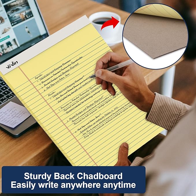 - 【Practical size】Each legal pad is 8.5 x 11 inches, the letter size that is easy to carry and store, and fits binders, folders, and subject notebooks in normal size. And the canary yellow paper is very friendly to the eyes and helps reduce eye fatigue while writing.