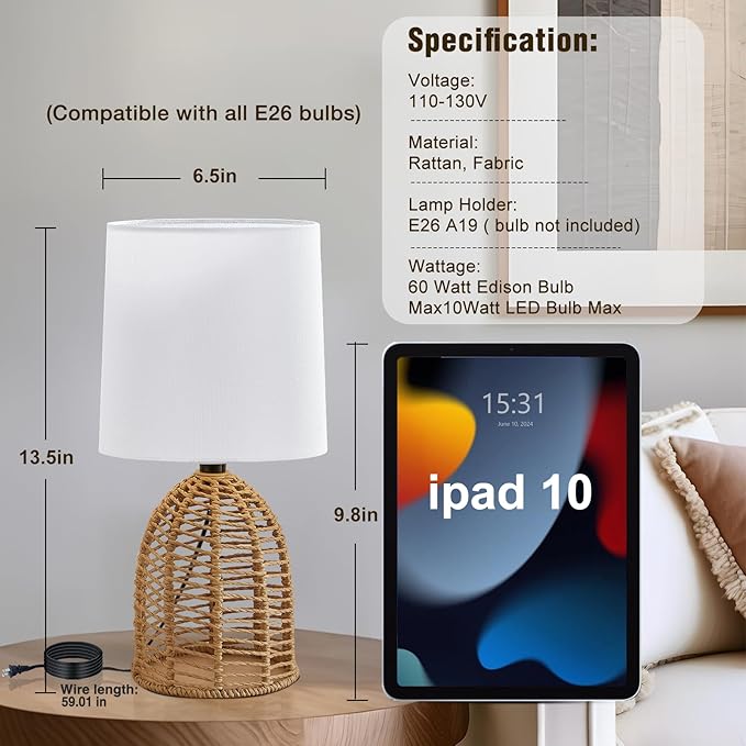 - Perfect Gift Choice: Featuring a convenient cord switch, these rattan table lamps make a thoughtful gift for family, friends, classmates, colleagues, and more. If you have any questions about our farmhouse table lamps, please contact us, we will provide you with the fastest and friendly service within 24 hours.