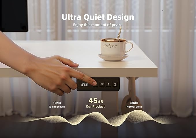 - Height Adjustment: The adjustable desk is equipped with an advanced electric lift system. The height adjustment range is from 28.3 inches to 46.5 inches, and different heights can be preset. The powerful motor ensures a smooth and low noise lifting process, quickly adjusting to your comfortable height.