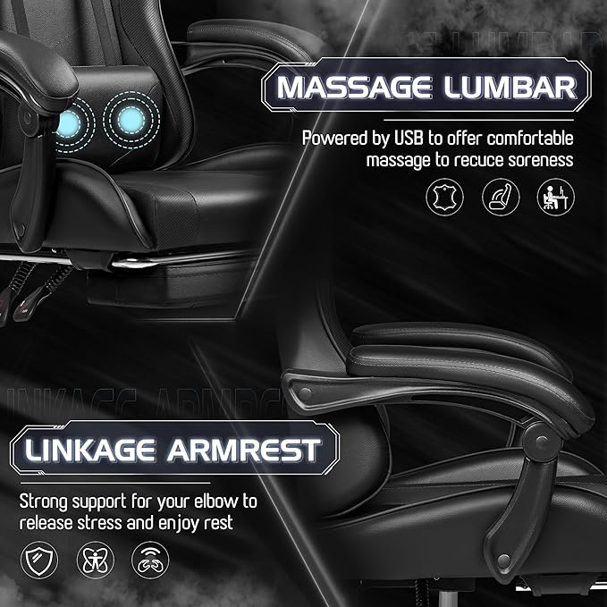 Homall Gaming Chair, Video Game Chair with Footrest and Massage Lumbar Support, Ergonomic Computer Chair Height Adjustable with Swivel Seat and Headrest (Dark Black)