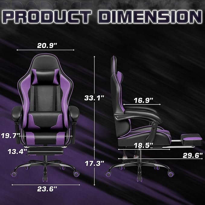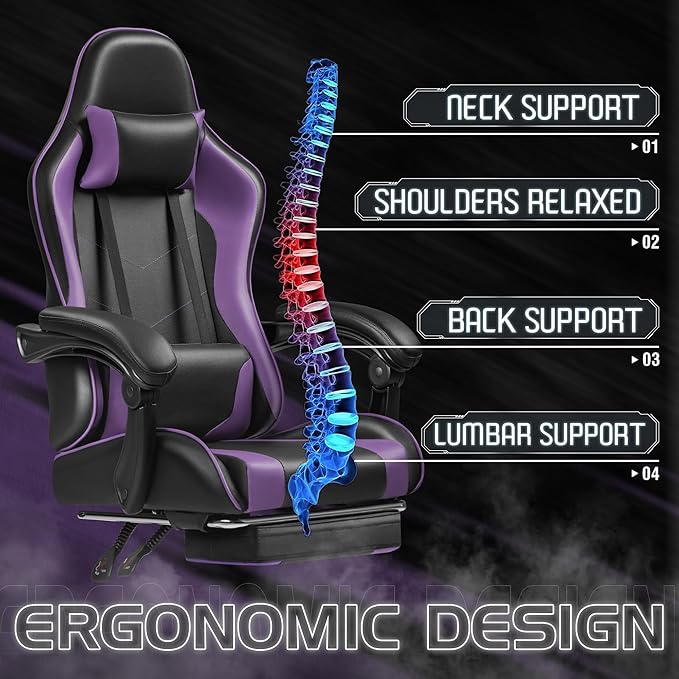 Homall Gaming Chair, Video Game Chair with Footrest and Massage Lumbar Support, Ergonomic Computer Chair Height Adjustable with Swivel Seat and Headrest (Purple)