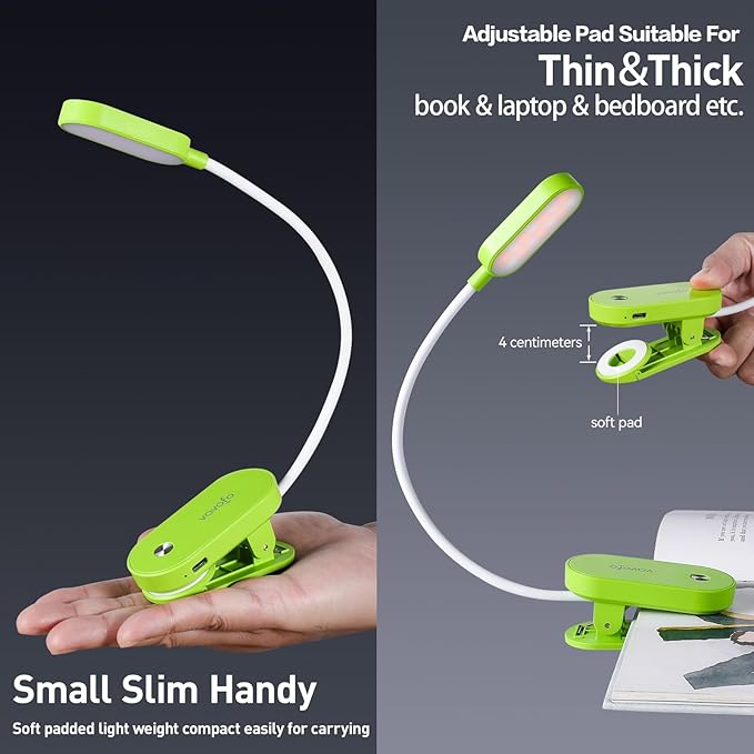 - 【360°Flexible Goose Neck & Non-slip Clip Design】- The Vavofo's reading light has the 360 degree adjustable neck with multi use non-slip clip which allows you to position the light exactly where you need it, creating the perfect private reading space for you while reading in bed, in college dorm, or on a plane, train, or bus. It can also be placed on the tabletop, work surface, etc. The book light is lightweight, portable, & travelling-friendly.