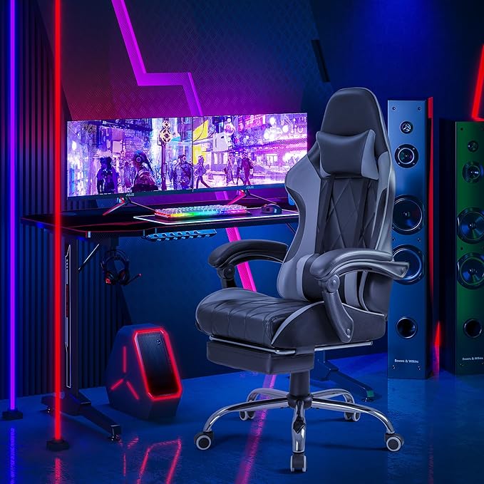 Homall Gaming Chair, Computer Chair with Footrest and Massage Lumbar Support, Ergonomic High Back Video Game Chair with Swivel Seat and Headrest (Grey)