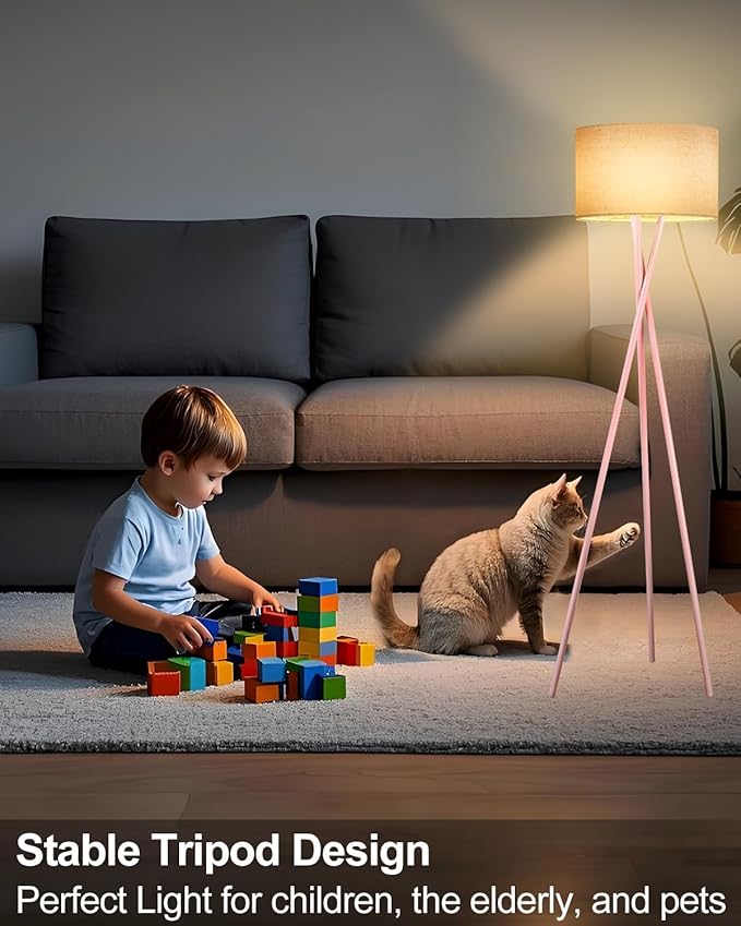Lightdot Pink Tripod Floor Lamp, Modern Floor Lamps for Living Room, Standing Lamp with Linen Shade, E26 Bulb Included, 66" Tall Floor Lamp for Bedroom, Home Office