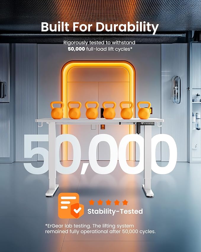 - Outstanding Stability: This electric standing desk has a sturdy solid steel frame with aerospace-grade lifting column connectors (still stable & secure after testing 100,059 times). It's a firm foundation for work, even at full height