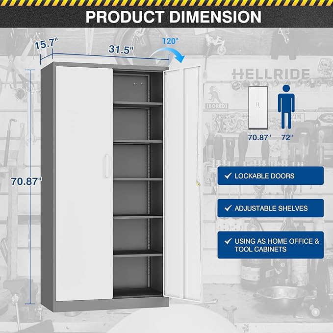 - Large Storage for Multiple- Uses Assembled dimension 71"H x 31.5"W x 15.7"D, the cabinet provides a very wide secure storage space, can be used in home, office, garage, basement, school, workshop, warehouse or other place.
