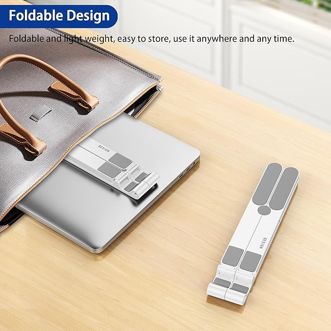 BESIGN LS01 Pro Ergonomic Laptop Stand, Plastic Laptop Riser, Portable and Adjustable Notebook Computer Holder Compatible with 10-14" Laptops (White)