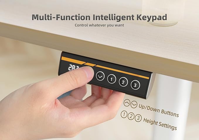- Electric Height Adjustment: Electric standing desk features a robust motor, allowing you to effortlessly adjust the height from 28.3 inches to 46.5 inches (including the 2.36-inch desktop thickness). With 3 programmable height presets, you can easily find your preferred height for maximum comfort and convenience.