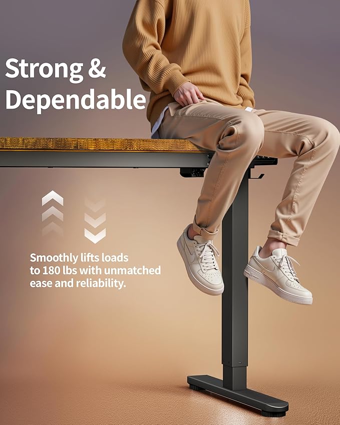 - Stable & Sturdy Design: This electric standing desk boasts a powerful motor that lifts at 0.8" per second and has been rigorously tested 20,000 times. This office desk can securely hold up to 132 lbs of weight. With safety as our priority, this rating reflects a conservative estimate - our real-world testing proves a 180lbs load capacity.