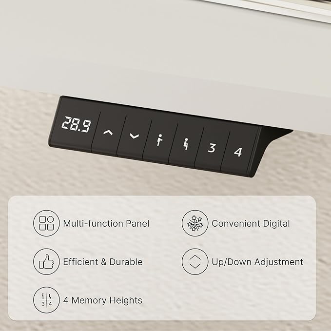 - 4 MEMORY PRESETS: Easily store and recall different height settings with our multifunctional memory system. Effortlessly switch between sitting and standing to reduce the risk of health issues like back and neck pain caused by prolonged sitting.