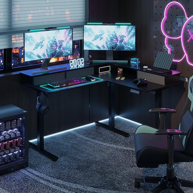 - VERSATILE L-SHAPED DESK: Ideal for gamers optimizing their setup or professionals seeking an efficient workstation, this L-shaped desk offers multifunctionality to meet diverse needs beyond up & down.