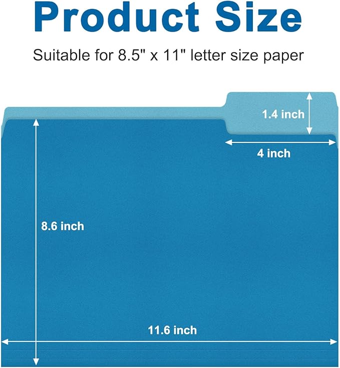 ViVin File Folder, 50 Pack Colored File Folders with 1/3-Cut Tabs, Fits 8.5 * 11 Letter Size Paper, Manilla Folders for Home Office School Documents(Blue)