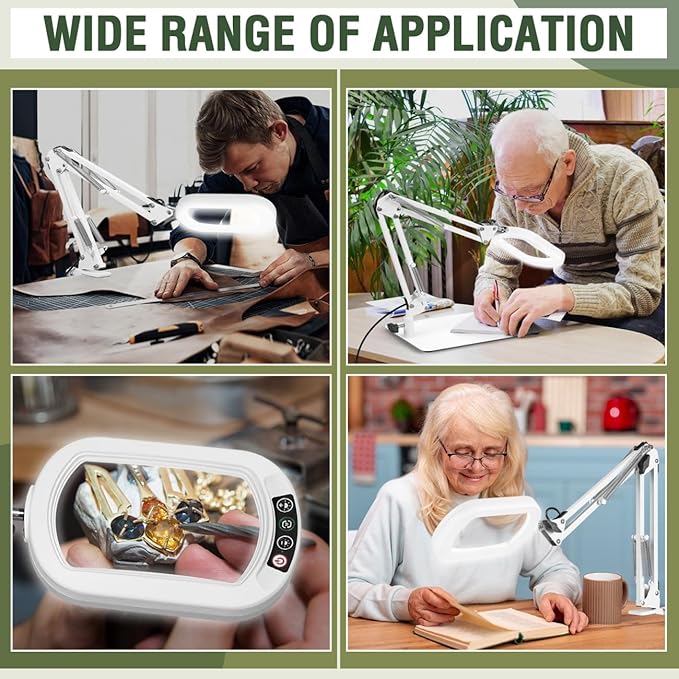 - Perfect for Close Work: The flexible metal arm design allows you to position the light exactly where you need it, making it the perfect assistant for anyone who needs to focus on intricate details. Whether you're an architect, jeweler, artist, or hobbyist, this desktop magnifying glass with light offers the clarity and stability you need to perform your best work.