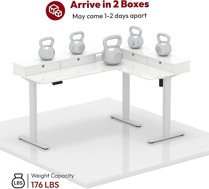 SANODESK L Shaped Standing Desk with 3 Drawers, Height Adjustable Stand up Desk, Corner Gaming Desk with Monitor Stand (Rustic Brown, 63"x47")