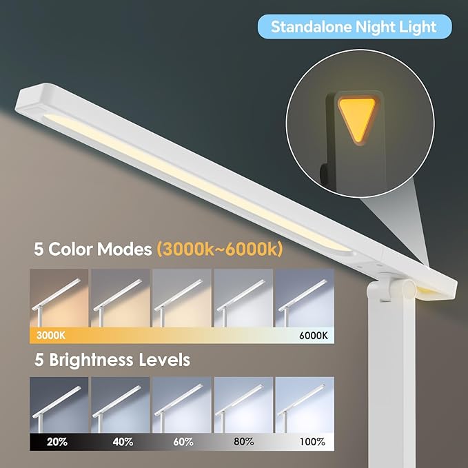 - [Adjustable Lighting]: Offers 5 color modes and 5 brightness levels for eye-comfort during extended use, with an anti-glare shade and memory function.