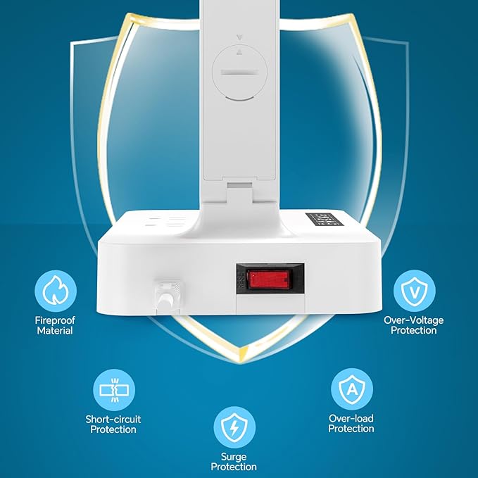 - [Surge Protection]: When using high power appliances, if the total power exceeds 1000W, the desk lamp will automatically shut down and cut off the power to protect our expensive devices.
