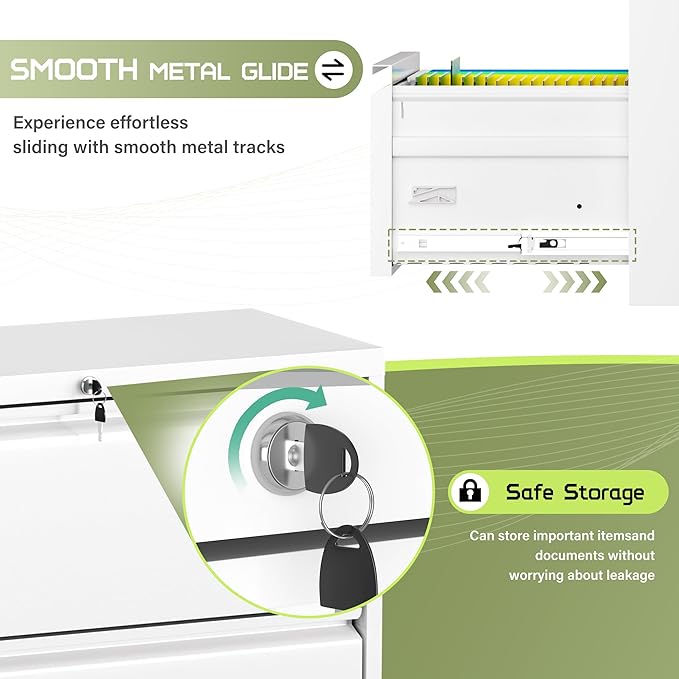 - 【High security】Four-drawer file cabinet with Lock is equipped with a built-in interlocking system to ensure drawer security. One locks with two keys ensures that your files are safe and easy to manage. The cabinet with drawers can be locked into four drawers at the same time with a lock, which is smooth and easy to operate.