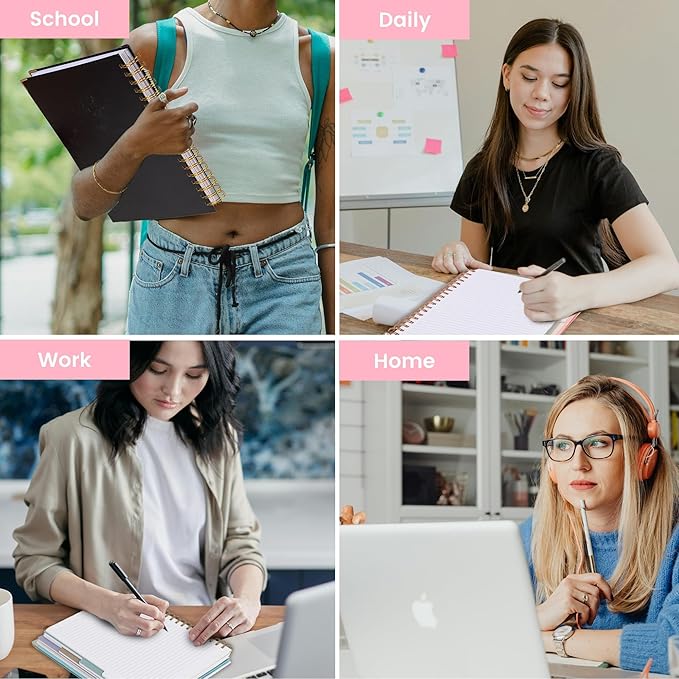 - 【Easy Writing at 180°Lay Flat】 Enjoy comfortable writing with this multi 5 subject notebook that opens flat to 180°. This design also strengthens the notebook's durability, and the double coil binding keeps the pages in place, without tearing apart.