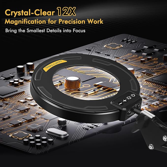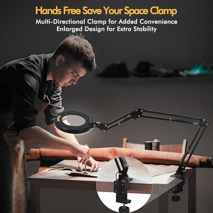 - 【Turn Blurry Vision into Sharp Focus】 Struggling with tiny details? Our 12X real glass magnifying lamp lens makes smallthing crystal-clear, eliminating eye strain so you can work or read comfortably for hours