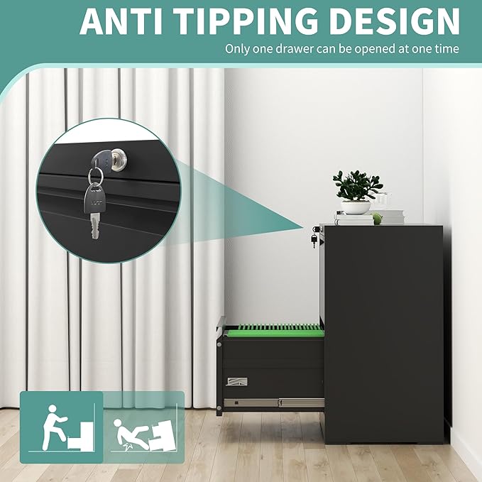 - 【Humanized Design】:The black 2 drawer metal cabinet features full-extension ball-bearing drawer slides, ensuring silent and smooth opening and closing of the drawers, making it convenient for use in a quiet office environment.File cabinet for home office with modern delicate appearance can match your other furniture perfectly and adds fashion magic and charm to your office.