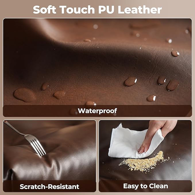 - Soft Touch Leather Fabric: Exquisite and luxurious soft faux leather fabric offers constant softness and comfort, with its unique texture and luster standing out. Featuring breathable, durability, smoothly, scratch-resistant, pet-friendly, non-pilling and easy to clean