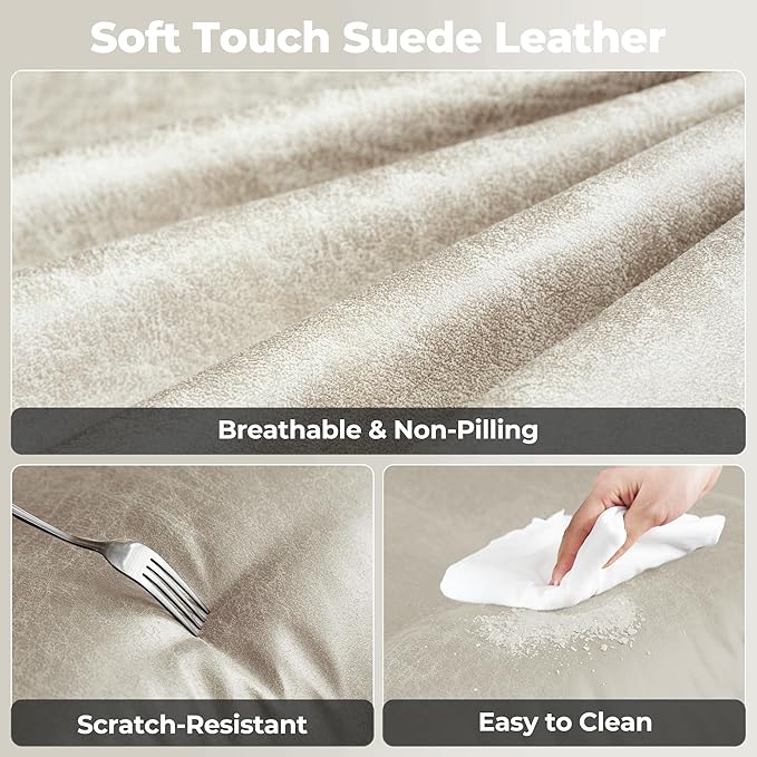 - Soft Touch Leather Fabric: Exquisite and luxurious soft faux leather fabric offers constant softness and comfort, with its unique texture and luster standing out. Featuring breathable, durability, smoothly, scratch-resistant, pet-friendly, non-pilling and easy to clean