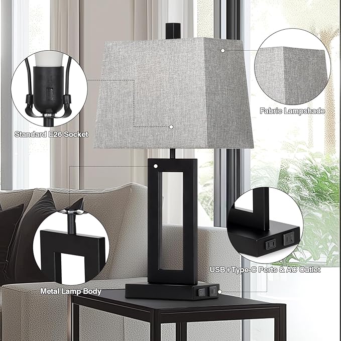 - Modern Design - Classic black decorative pole design with trapezoidal gray fabric lampshades gives the bedroom lamps a gorgeous look. Perfect for bedrooms, living rooms, end tables, offices, hotels, and guest rooms as a daily decor.