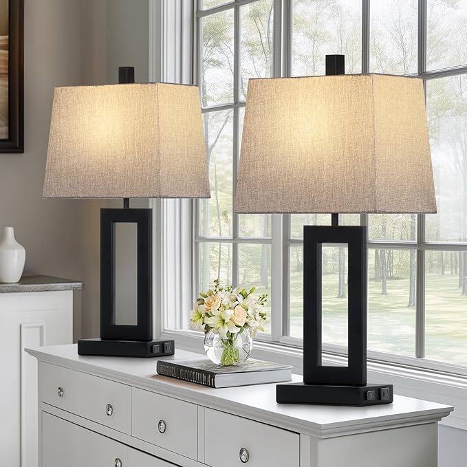- Included 2 LED Bulb - The USB lamp for bedroom comes with an E26 LED bulbs, 800 lumens, 2700K, 25,000 hours lifespan, which can save up to 90% energy. The natural lampshade softens the light and provides a comfortable and natural light without flickering or glare, ideal for bedside reading, end table lamp, side table, office work.
