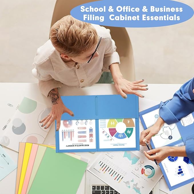 - LARGE CAPACITY: Two pocket folders is made of thick and texture paper, not easy to break and deform. Holds 50+ sheets per pocket, ideal for long-term use and storage
