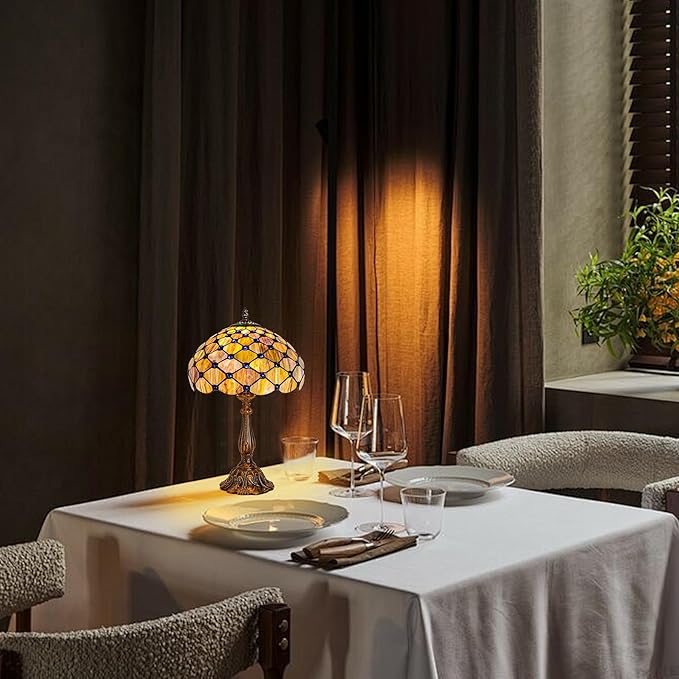 Tiffany Lamp Vintage Gradient Green Stained Glass Bead Table Lamp Desk Bedside Reading Light Decor Bedroom Living Room Home Office D12*H18 Inches (Gradient Green)