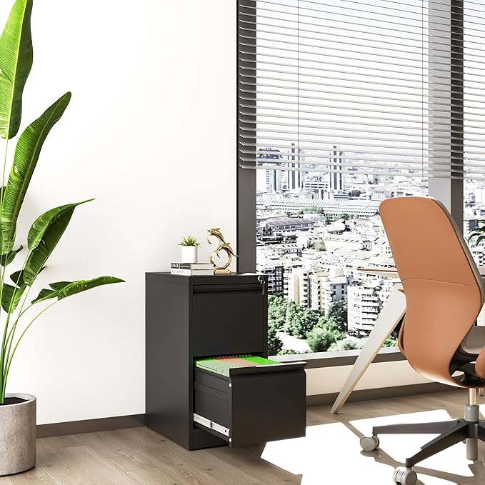 - 【Large capacity】This 2 drawer black file cabinet offers spacious storage with larger and deeper drawers for letters size folders, drawer with lock is equipped with adjustable hanging rails, allowing you to customize the organization of your files