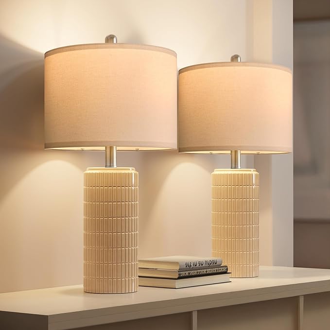 - Ideal Decor and Present for her: Elevate your home decor with Pokat ceramic nightstand lamps, which also serves as a perfect decorative piece. This living room lamps set of 2’ modern design add character and warmth to any space, creating a chic and inviting ambiance. Whether placed on a nightstand, bedside in bedroom or on end table, console table, hallway in the living room, this table lamp for bedroom effortlessly enhances the overall aesthetic. To showcase your refined taste in decor, this modern lamps makes an ideal present for mother's Day, Valentine's Day, Housewarming, Birthday, Anniversary, Wedding to her, friends, wife, women, kids, girls, mother, grandmother.
